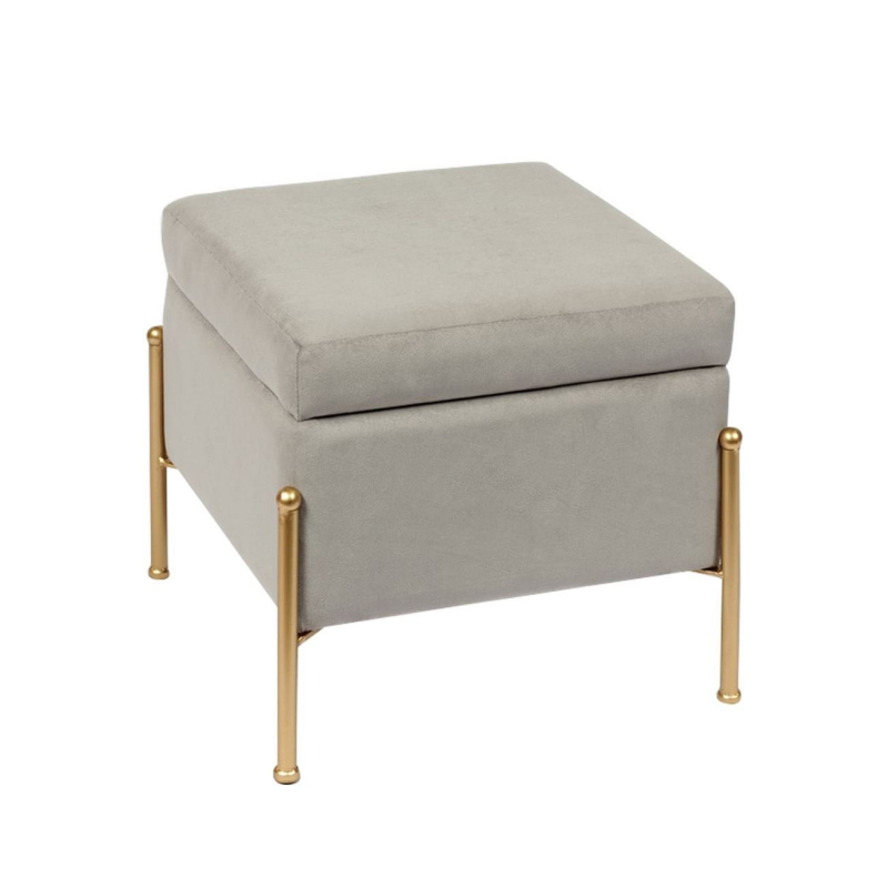 RAY Αποθηκευτικό Σκαμπό, Μέταλλο Βαφή Χρυσό, Ύφασμα Velure, Απόχρωση Γκρι 40x40x37cm