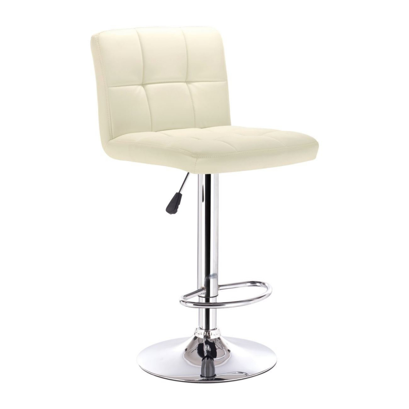 LINO Σκαμπό BAR με Πλάτη, Χρώμιο, PU Εκρού, Ρυθμιζόμενο Ύψος, Περιστρεφόμενο 44x50x62/92-83/113cm