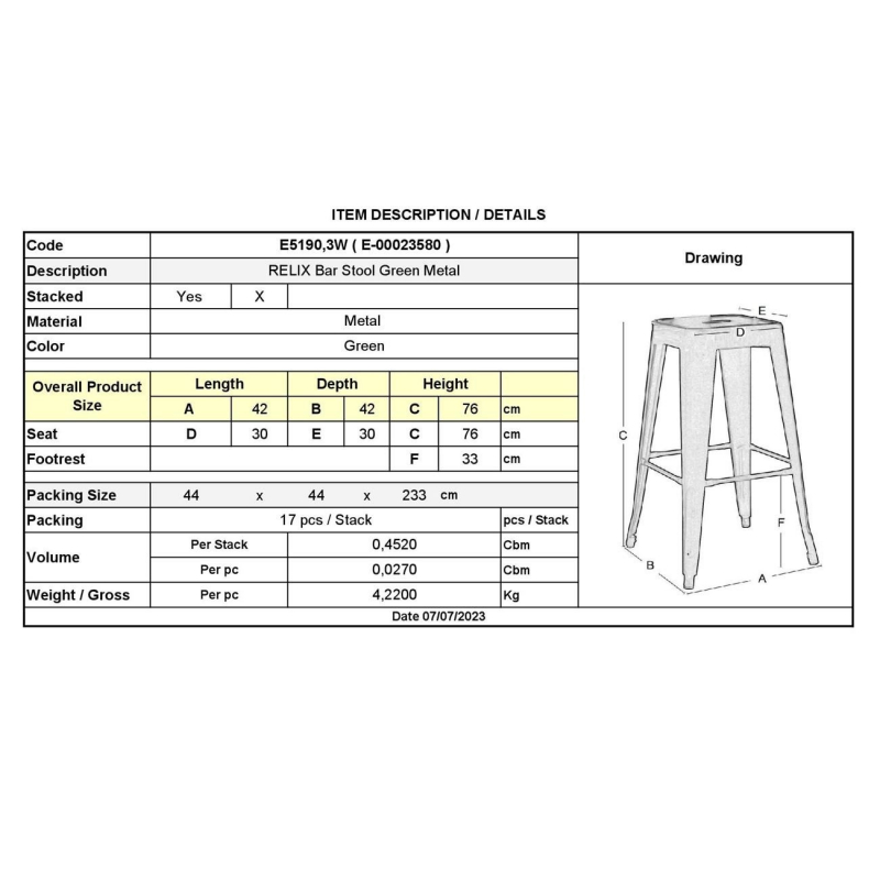 Ε5190,3W RELIX Σκαμπό Bar Μέταλλο Πράσινο