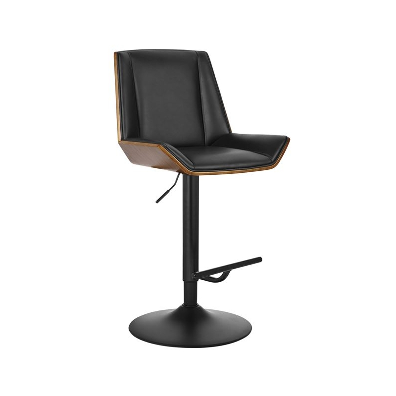 NUMAN Σκαμπό BAR με Πλάτη, Βάση Μαύρο, Καρυδί - ΡU Μαύρο, Ρύθμιση Ύψους, Περιστρεφόμενο 52x50x62/96-83/117cm