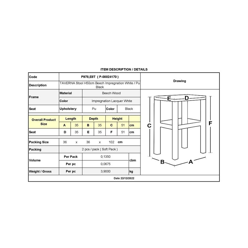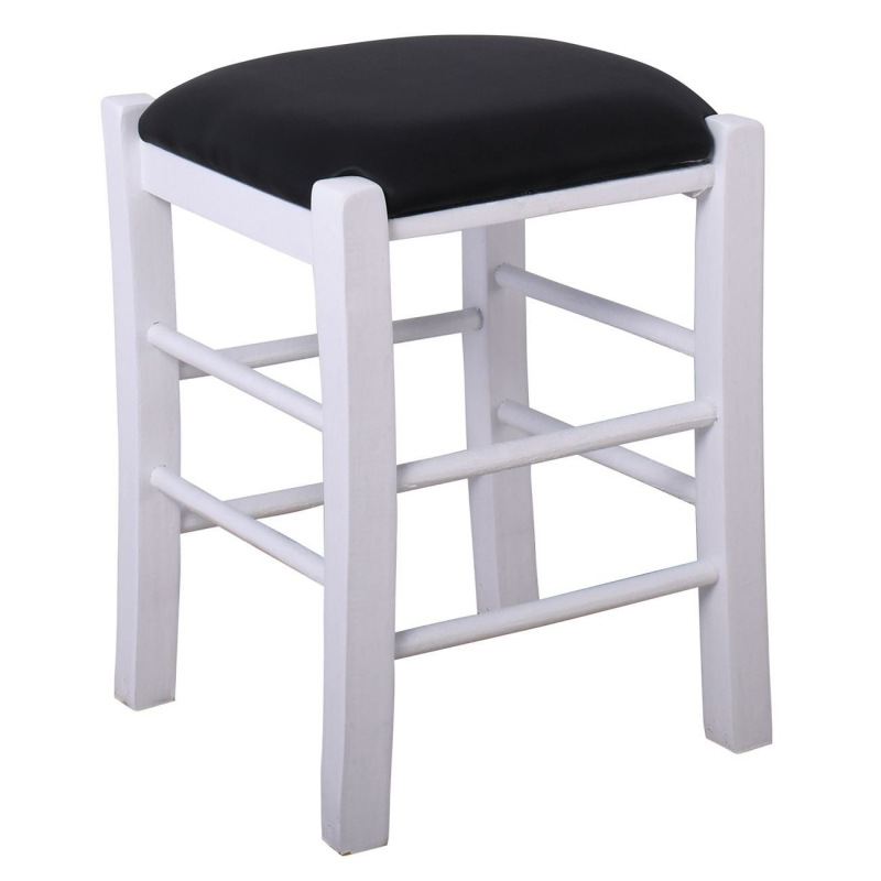 ΤΑΒΕΡΝΑΣ Σκαμπό Βοηθητικό, Οξιά Βαφή Εμποτισμός Λάκα Άσπρο, Κάθισμα Pu Μαύρο 35x35x51cm