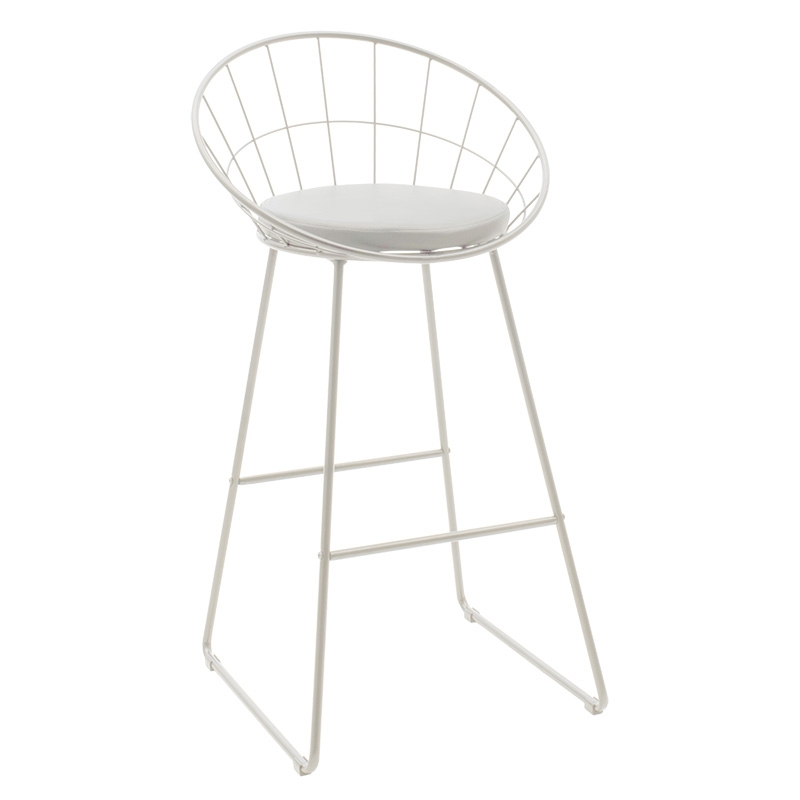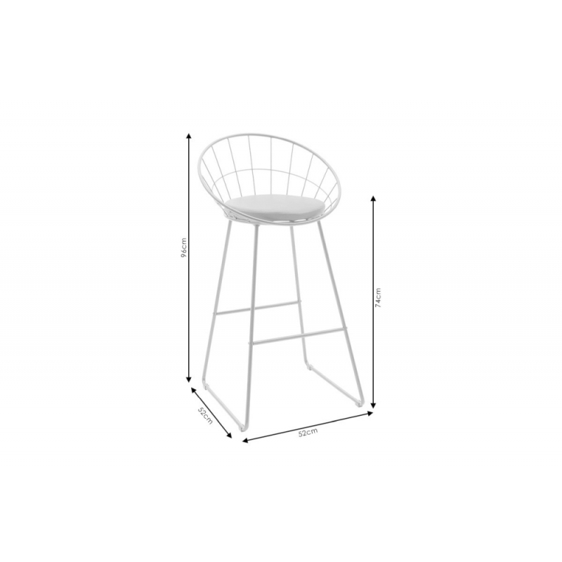 Σκαμπό μπαρ Seth pakoworld μέταλλο λευκό-μαξιλάρι PVC λευκό