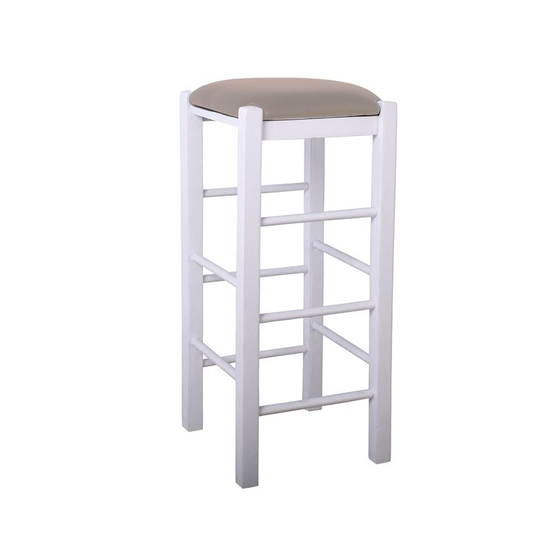 ΤΑΒΕΡΝΑΣ Σκαμπό BAR, Οξιά Βαφή Εμποτισμός Λάκα Άσπρο, Κάθισμα Pu Cappuccino 35x35x81cm