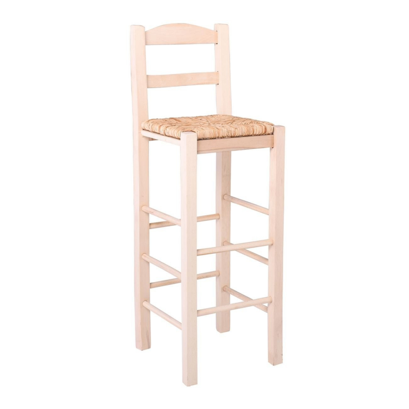 ΣΙΦΝΟΣ Σκαμπό BAR με Πλάτη, Οξιά Εμποτισμός Φυσικό, Κάθισμα Ψάθα 36x37x76/107cm
