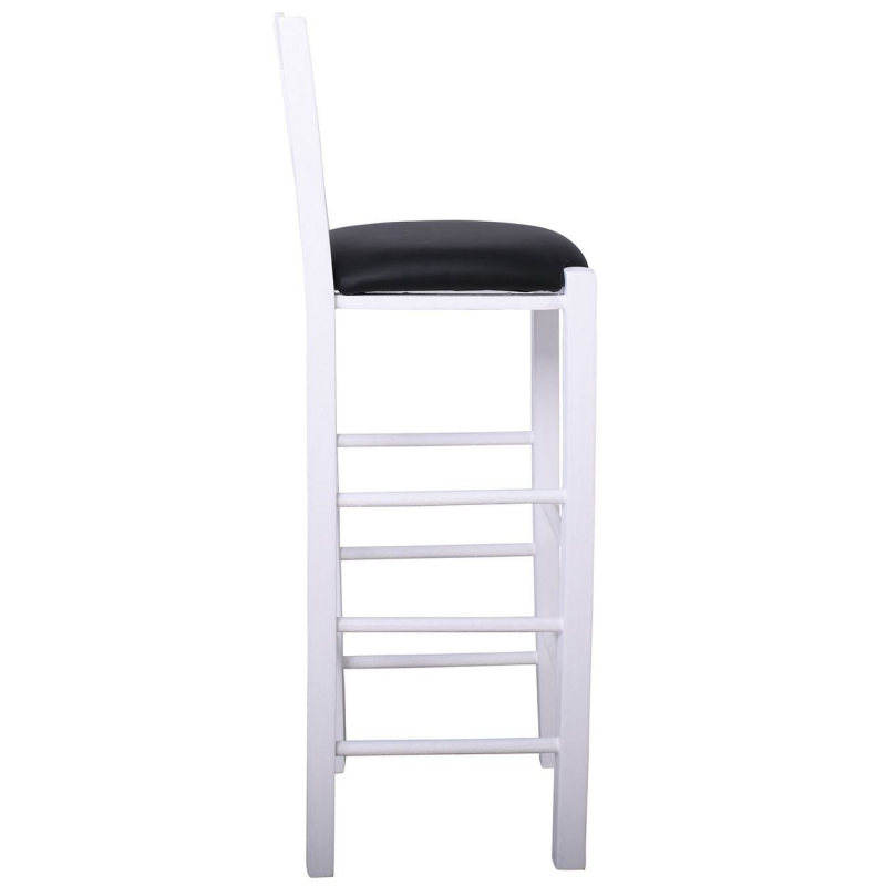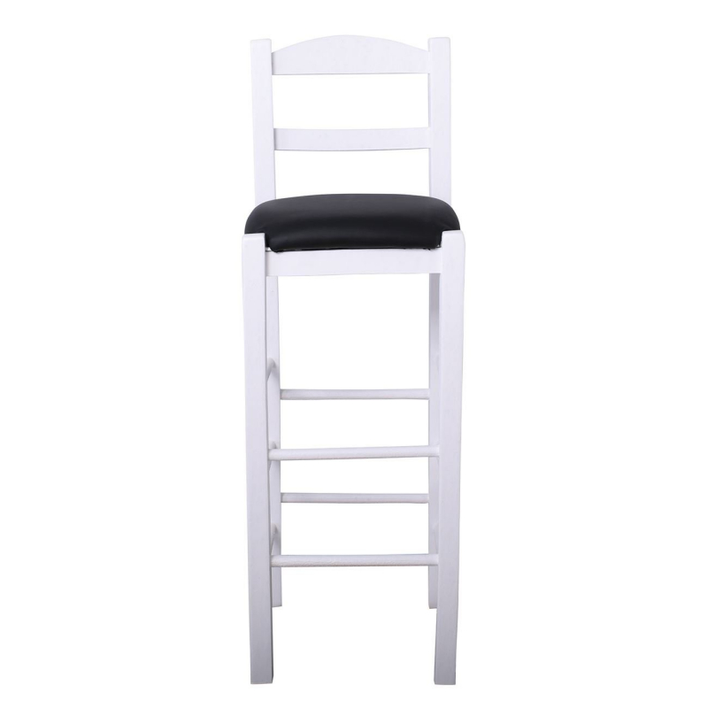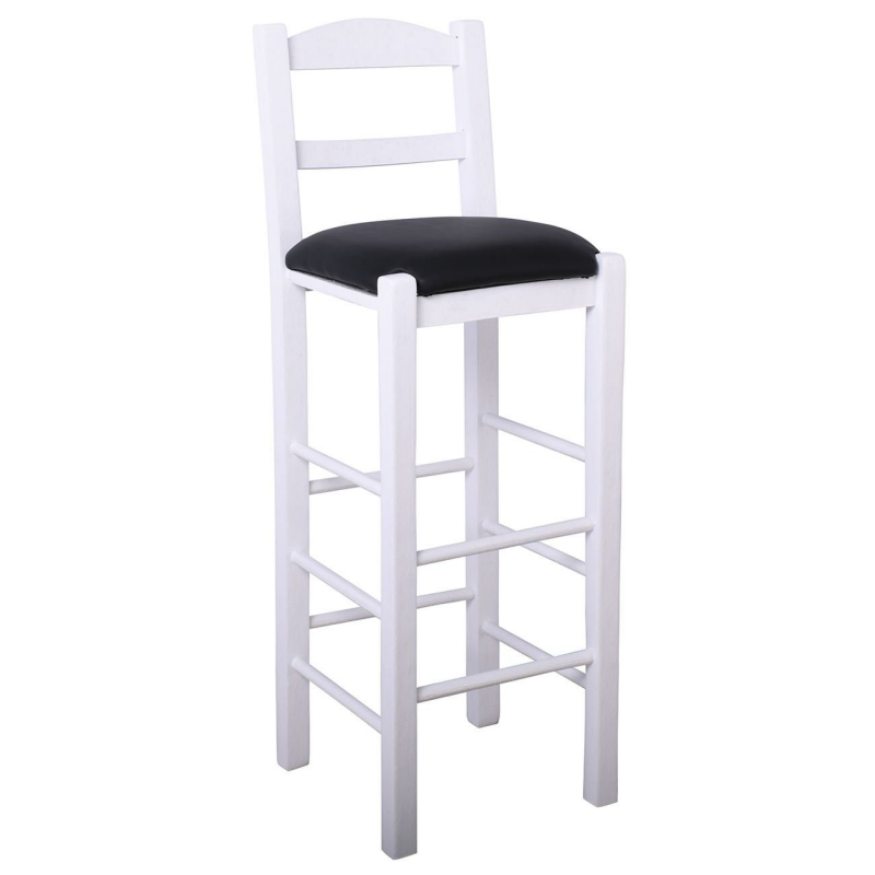 ΣΙΦΝΟΣ Σκαμπό BAR με Πλάτη, Οξιά Βαφή Εμποτισμός Λάκα Άσπρο, Κάθισμα Pu Μαύρο 36x37x78/107cm