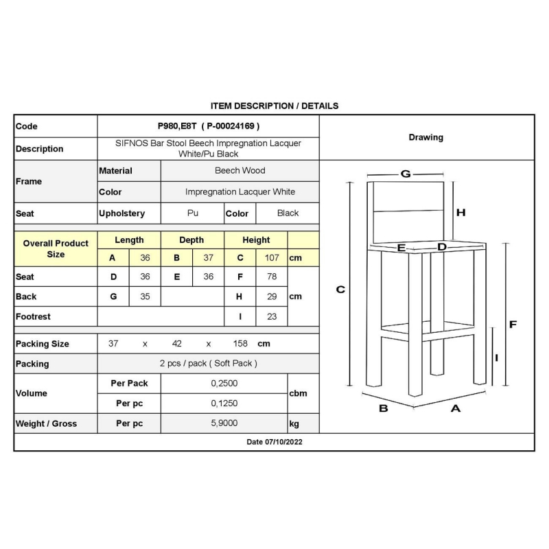 Ρ980,Ε8Τ ΣΙΦΝΟΣ Σκαμπό BAR Οξιά Εμποτ.Λάκα Άσπρο/Pu Μαύρο