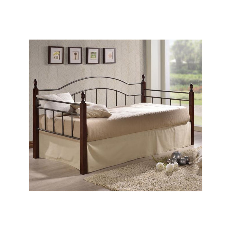 VINCENT Daybed Κρεβάτι Μονό Μέταλλο Βαφή Μαύρο, Ξύλο Καρυδί
