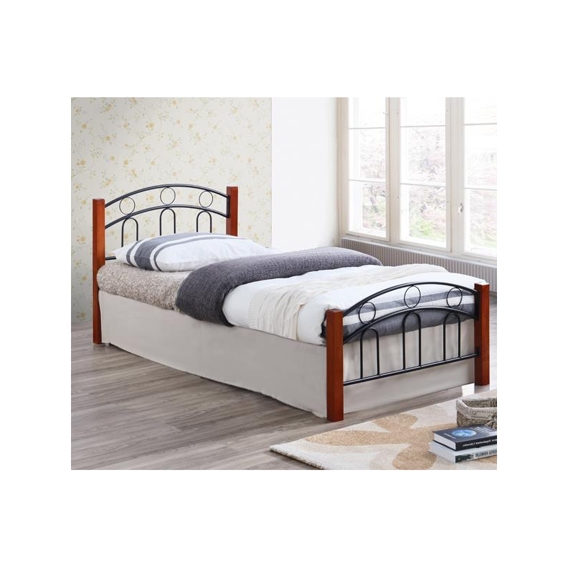 NORTON Κρεβάτι Μονό, για Στρώμα 90x190cm, Μέταλλο Βαφή Μαύρο, Ξύλο Καρυδί