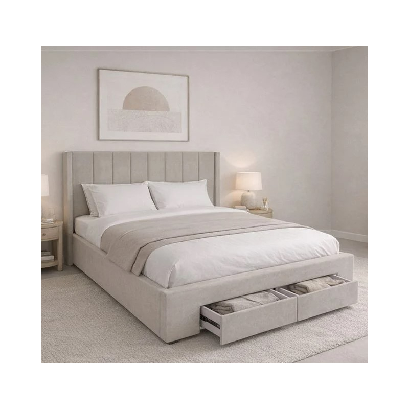NEBRASKA Κρεβάτι Διπλό με Αποθηκευτικό Χώρο+2 Συρτάρια, για Στρώμα 160x200cm, Ύφ.Μπεζ