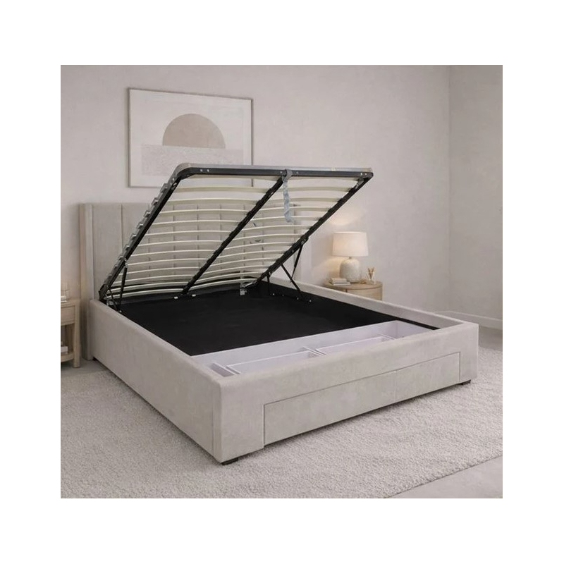 Ε8077,1 NEBRASKA Κρεβάτι-Συρτάρια (για στρώμα 160x200cm) Ύφ.Μπεζ/Αποθ.Χώρος