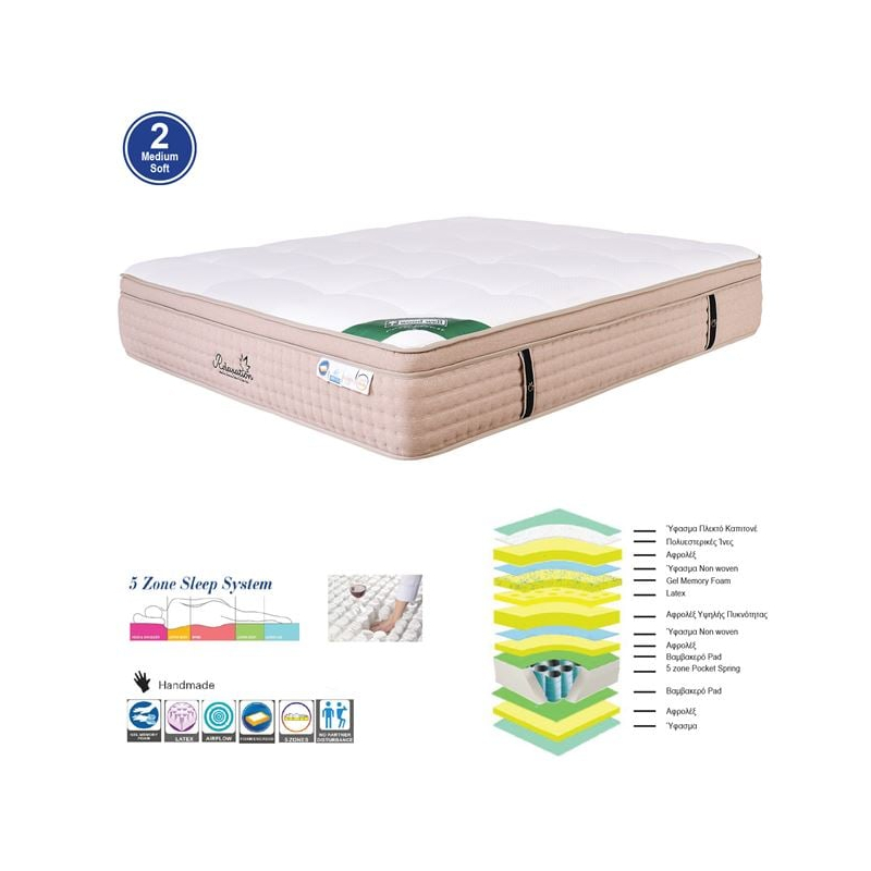 ΣΤΡΩΜΑ Pocket Spring 5-Zone Gel Memory Foam + Latex, Μονής Όψης (2)