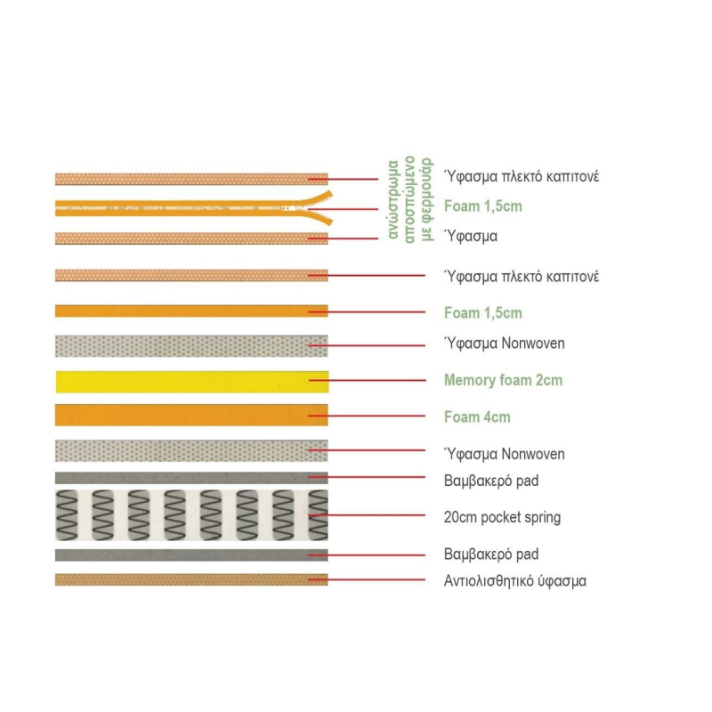 ΣΤΡΩΜΑ Ανώστρωμα Αφαιρούμενο Memory Foam, Pocket Spring, Μονής όψης (4)