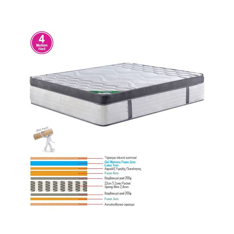 01.Ε2059,2 ΣΤΡΩΜΑ Pocket Spring 5-Zone Gel Memory Foam + Latex, Μονής Όψης (2) 160x200x(34/32)cm 498,56 €