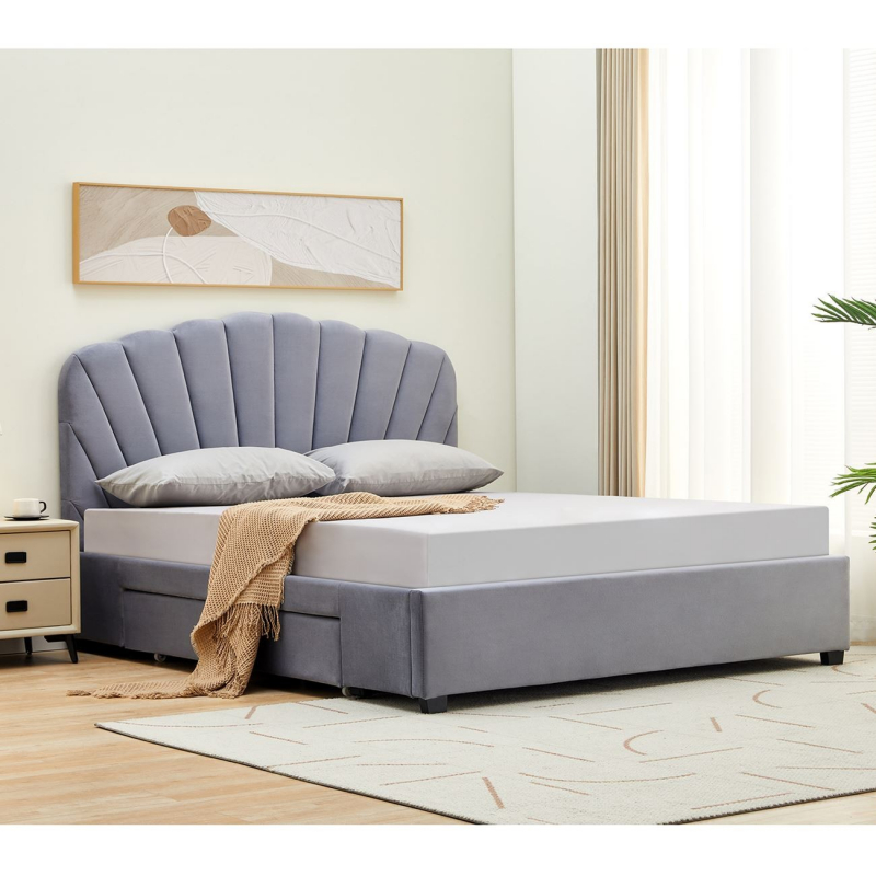 ARIEL Κρεβάτι Διπλό για Στρώμα 160x200cm, με Αποθηκευτικό Συρτάρι, Velure Απόχρωση Γκρι
