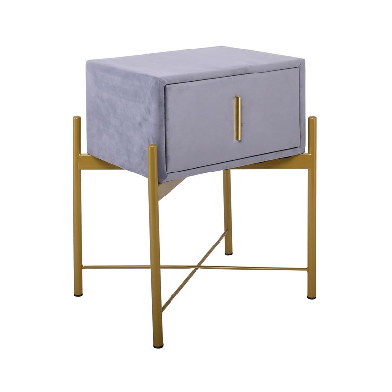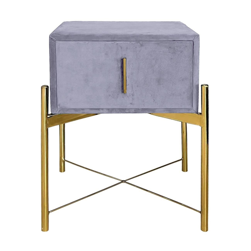 PASSION  Κομοδίνο με 1 Συρτάρι, Ύφασμα Velure Απόχρωση Γκρι