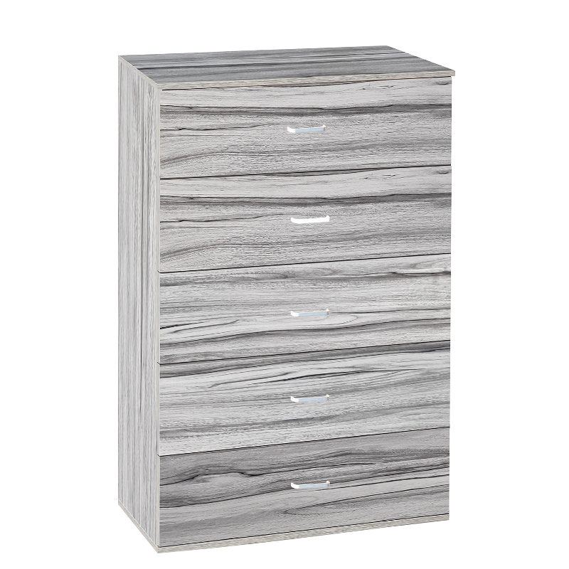 Συρταριέρα με πέντε ευρύχωρα συρτάρια και επένδυση από υψηλής ποιότητας μελαμίνη. Ιδιαίτερα πρακτική λύση σε γκρι απόχρωση.
