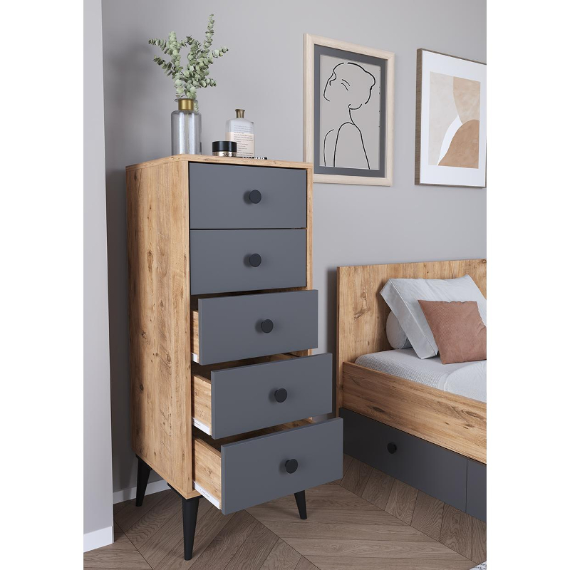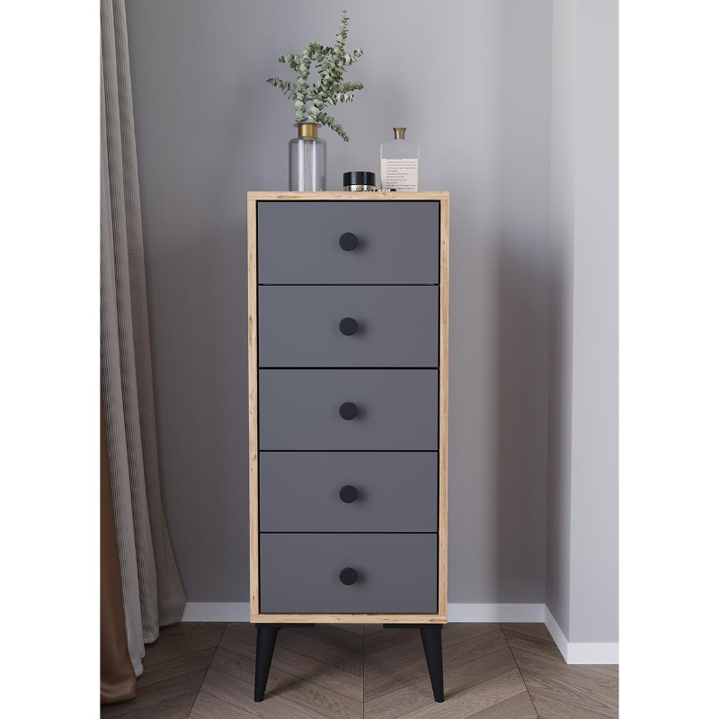 Συρταριέρα ArteLibre AMARI Δρυς/Ανθρακί Μοριοσανίδα 43x43x114cm