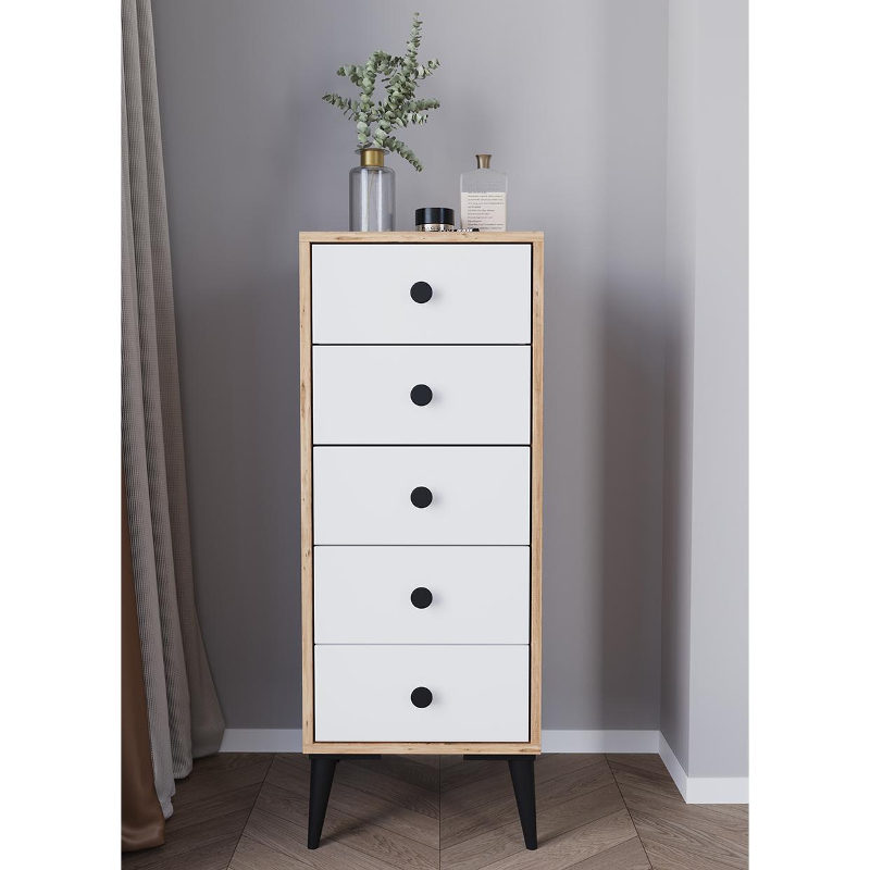 Συρταριέρα ArteLibre AMARI Δρυς/Λευκό Μοριοσανίδα 43x43x114cm