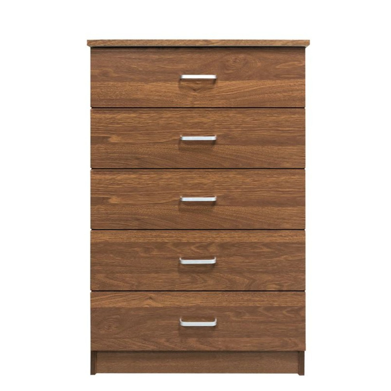 Συρταριέρα με πέντε ευρύχωρα συρτάρια και επένδυση από υψηλής ποιότητας μελαμίνη. Ιδιαίτερα πρακτική λύση σε απόχρωση καρυδί.