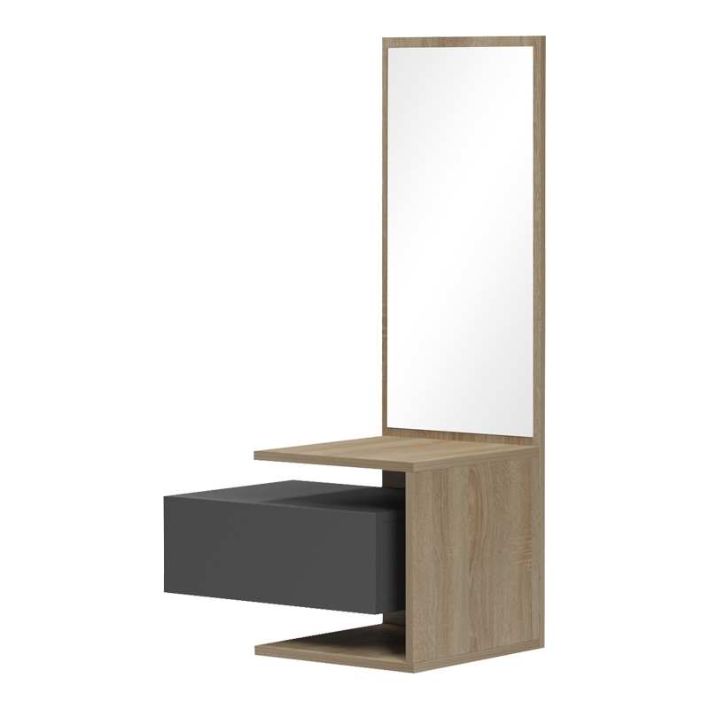 Τουαλέτα κρεβατοκάμαρας Kendi pakoworld κρεμαστή με καθρέπτη σε γκρι-sonoma απόχρωση 49.1x31.3x90εκ