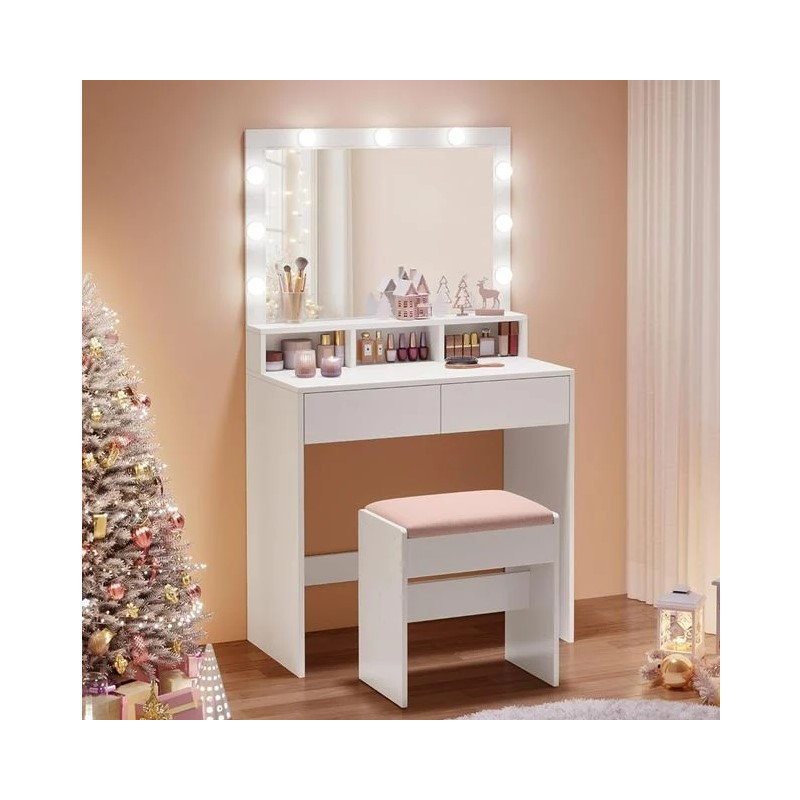 01.Ε7353,2 VANITY Τουαλέτα με ενσωματωμένο Καθρέπτη & Σκαμπό Απόχρωση Sonoma Oak-Cream 60x45x90/130cm 118,89 €