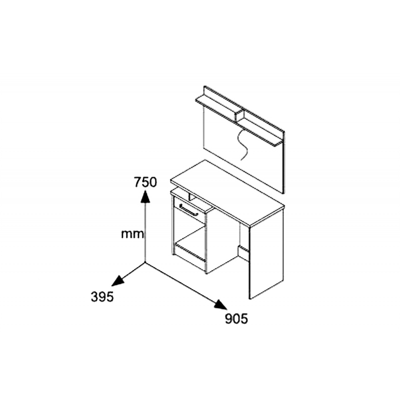 - Η σύνθεση περιλαμβάνει την κονσόλα με ένα μεγάλο ντουλάπι & ένα συρτάρι, καθρέπτη με βοηθητικά ψηλά ράφια και εξτρά ένα σκαμπό.