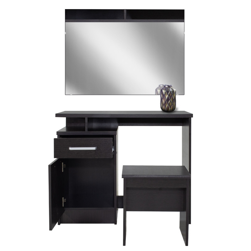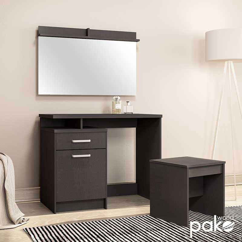 Τουαλέτα κρεβατοκάμαρας OLYMPUS pakoworld με καθρέπτη και σκαμπό χρώμα wenge
