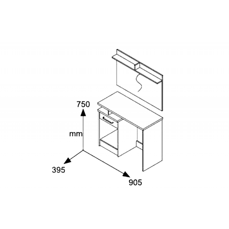 - Η σύνθεση περιλαμβάνει την κονσόλα με ένα μεγάλο ντουλάπι & ένα συρτάρι, καθρέπτη με βοηθητικά ψηλά ραφάια και εξτρά ένα σκαμπό.