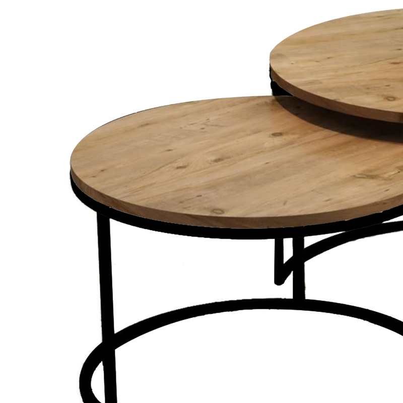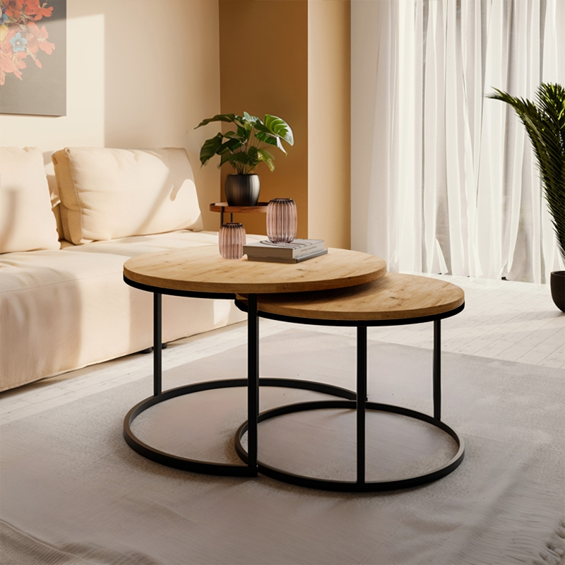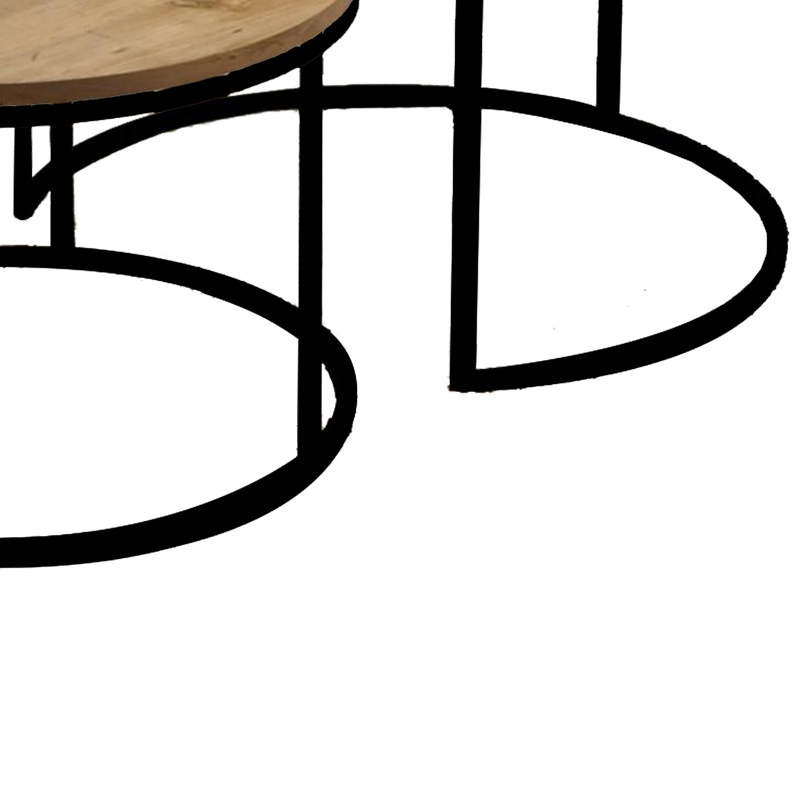Τραπέζια σαλονιού Solme pakoworld σετ 2τεμ φυσικό μελαμίνης-μαύρο μέταλλο