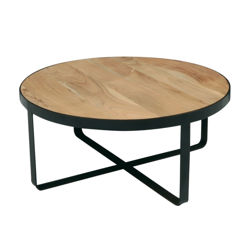 ΕΑ7010 - OVEN Τραπ.Σαλονιού Φ80x35cm Ακακία Φυσικό/Μεταλ.Μαύρο