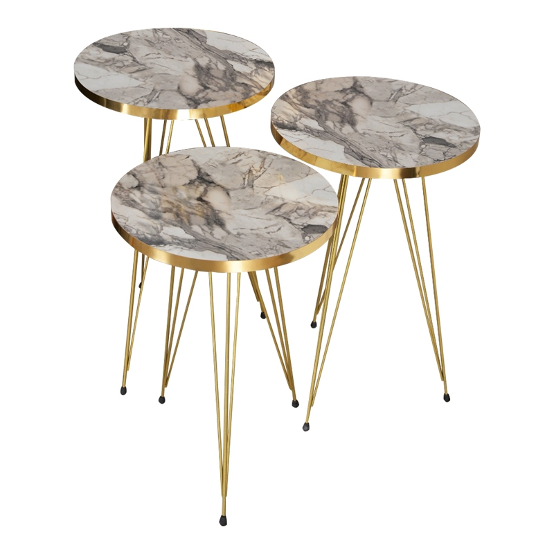 Βοηθητικά τραπέζια Wakmi pakoworld σετ 3τεμ γκρι μπεζ μαρμάρου μελαμίνης-χρυσό μέταλλο