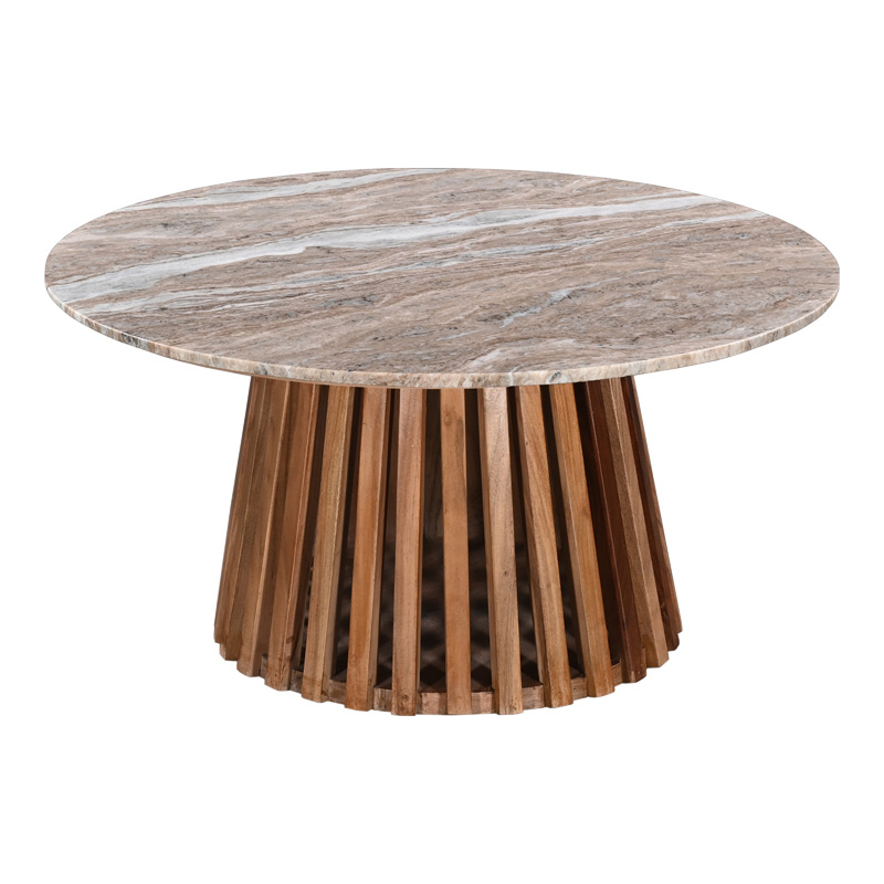 Τραπέζι σαλονιού Coozlin Inart sintered stone σε απόχρωση λευκό μαρμάρου με λευκό μέταλλο Φ100x40εκ