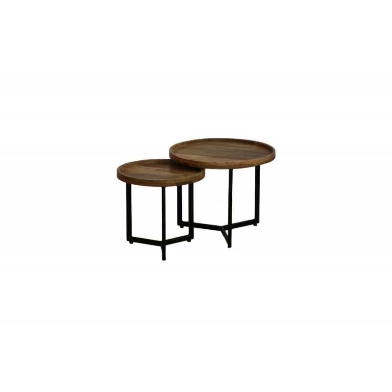 Τραπέζι σαλονιού Kelly pakoworld σετ 2τεμ pakoworld μάνγκο ξύλο σε φυσική-μαύρη απόχρωση