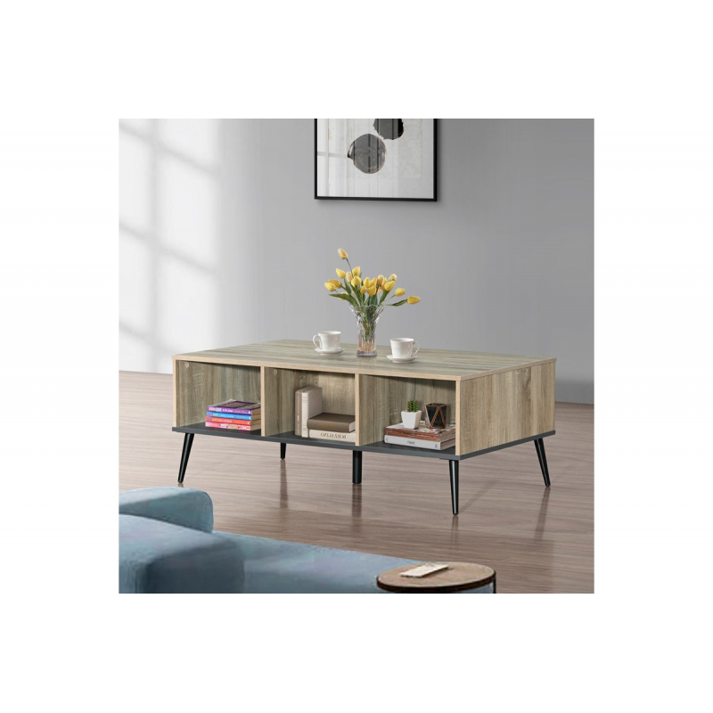 Αναβαθμίστε το σαλόνι ή τον χώρο ψυχαγωγίας σας με αυτό το λειτουργικό και αισθητικά προσεγμένο τραπέζι σαλονιού. Ο σχεδιασμός του,το καθιστά ιδανική επιλογή για σύγχρονους χώρους, προσφέροντας ταυτόχρονα πρακτικές λύσεις οργάνωσης. Τεχνικά χαρακτηριστικά: Σκελετός από υψηλής ποιότητας μοριοσανίδα με επένδυση paper wood με αντοχή στη φθορά και στο χρόνο και MDF μεγάλης ανθεκτικότητας. Φέρει χώρο στο κάτω μέρος χωρισμένο σε τρία διαφορετικά τμήματα για την αποθήκευση και οργάνωση των αντικειμένων σας. Στήριξη σε τέσσερα μεταλλικά πόδια και σε ένα μεσαίο-κεντρικό pp υψηλής αντοχής. Προσφέρεται στο χρωματικό συνδυασμό του sonoma-ανθρακί. Διαστάσεις προϊόντος: Μήκος: 121 εκ Πλάτος: 60 εκ Ύψος: 44,5 εκ