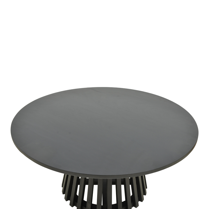 Τεχνικά Χαρακτηριστικά: Κατασκευασμένο από μασίφ ξύλο ακακίας. Το μασίφ ξύλο ακακίας αναφέρεται στο ξύλο που προέρχεται από το δέντρο ακακίας και χρησιμοποιείται στην κατασκευή επίπλων και άλλων εφαρμογών. Φυσική Ομορφιά & Ζεστασιά: Η στρογγυλή επιφάνεια από μασίφ ξύλο, με τους ορατούς κόκκους και τις πλούσιες αποχρώσεις της, προσδίδει μια αίσθηση γαλήνης και ζεστασιάς. Είναι το τέλειο φόντο για τα αγαπημένα σας αντικείμενα ή για να απολαύσετε τις καθημερινές σας στιγμές. Μοναδική Βάση "Ακτίνων": Το πραγματικό highlight αυτού του τραπεζιού είναι η κωνική του βάση, σχηματισμένη από κάθετες ξύλινες "πλευρές" ή "ακτίνες". Αυτό το ιδιαίτερο μοτίβο δημιουργεί ένα παιχνίδι φωτός και σκιάς, προσθέτοντας βάθος, υφή και μια μοντέρνα, αρχιτεκτονική πινελιά που το κάνει να ξεχωρίζει από οτιδήποτε άλλο. Στιβαρή Κατασκευή: Φτιαγμένο με ποιοτικά υλικά και προσοχή στην κάθε λεπτομέρεια, αυτό το τραπέζι υπόσχεται αντοχή και σταθερότητα για χρόνια χρήσης. Προσφέρεται σε χρώμα μαυρο