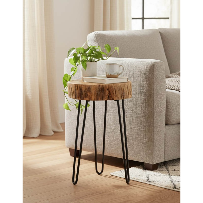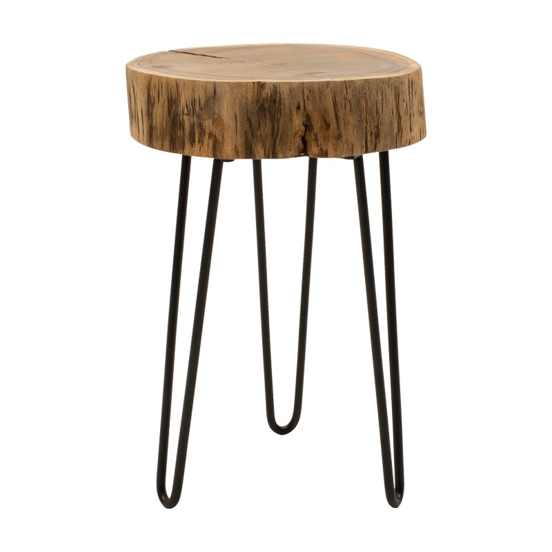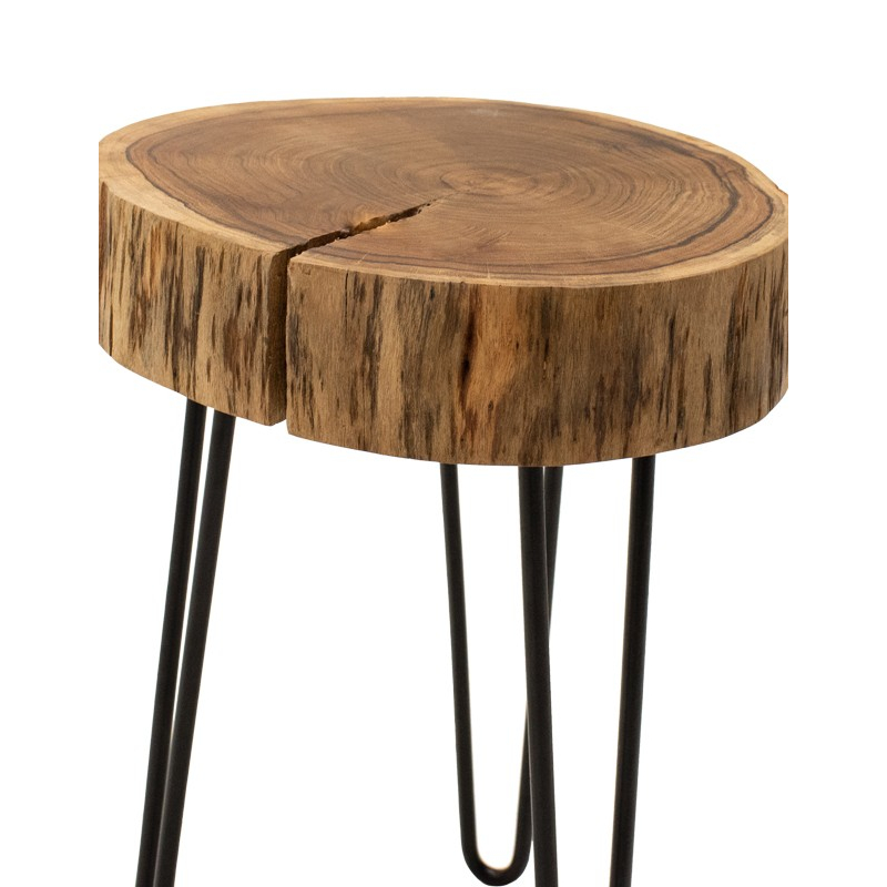 Βοηθητικό τραπέζι Tripp pakoworld μασίφ ξύλο ακακίας σε φυσική απόχρωση με μαυρα μεταλλικά πόδια 32x30x47εκ