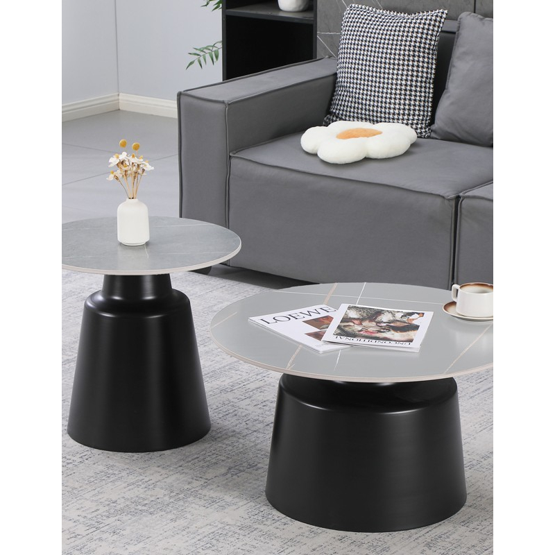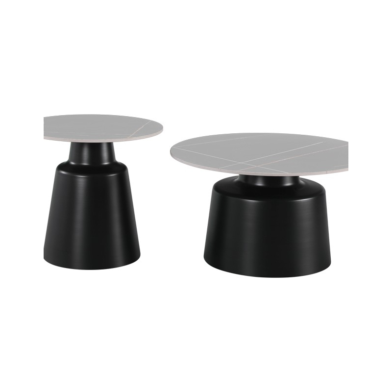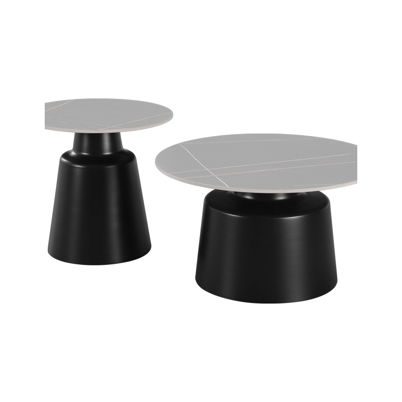 Τραπέζια σαλονιού Dualis pakoworld σετ 2 τεμ μαυρο μέταλλο-sintered stone σε γκρι μαρμάρου