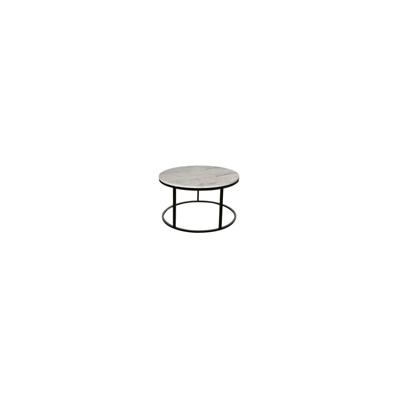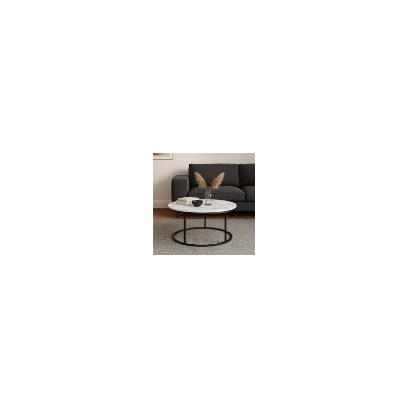 Τραπέζι σαλονιού Sikele pakoworld λευκή όψη μαρμάρου και μαύρα μεταλλικά πόδια Φ60x40εκ