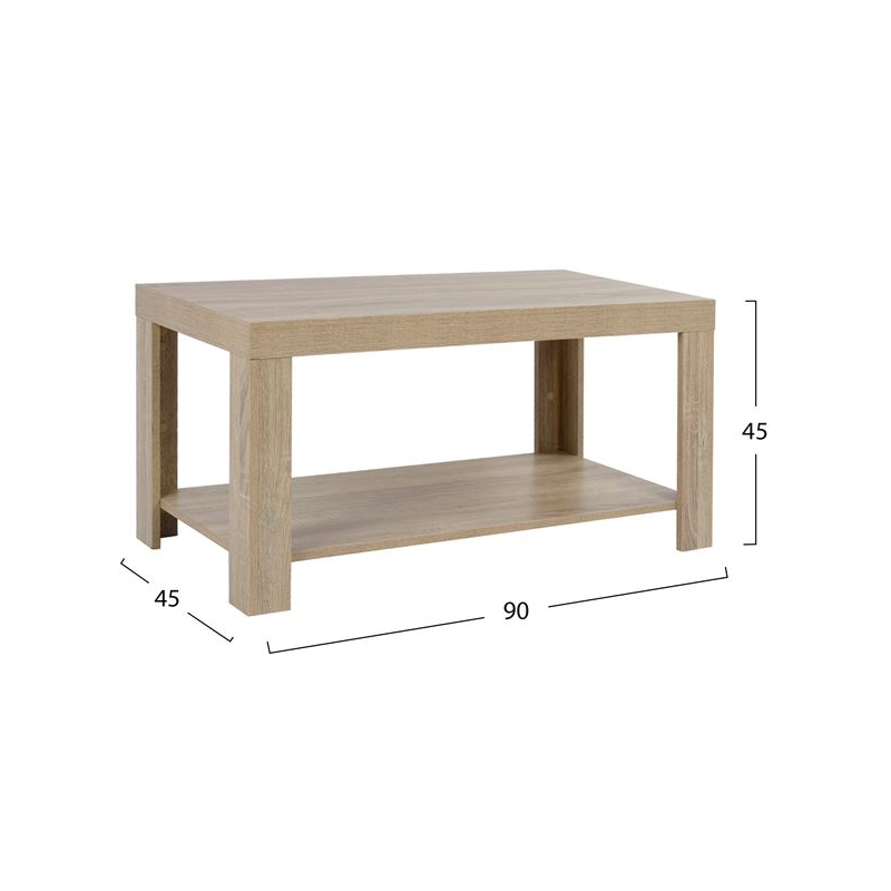 Μοντέρνο τραπέζι σαλονιού από μελαμίνη αρίστης ποιότητας με ένα ράφι στο κάτω μέρος.