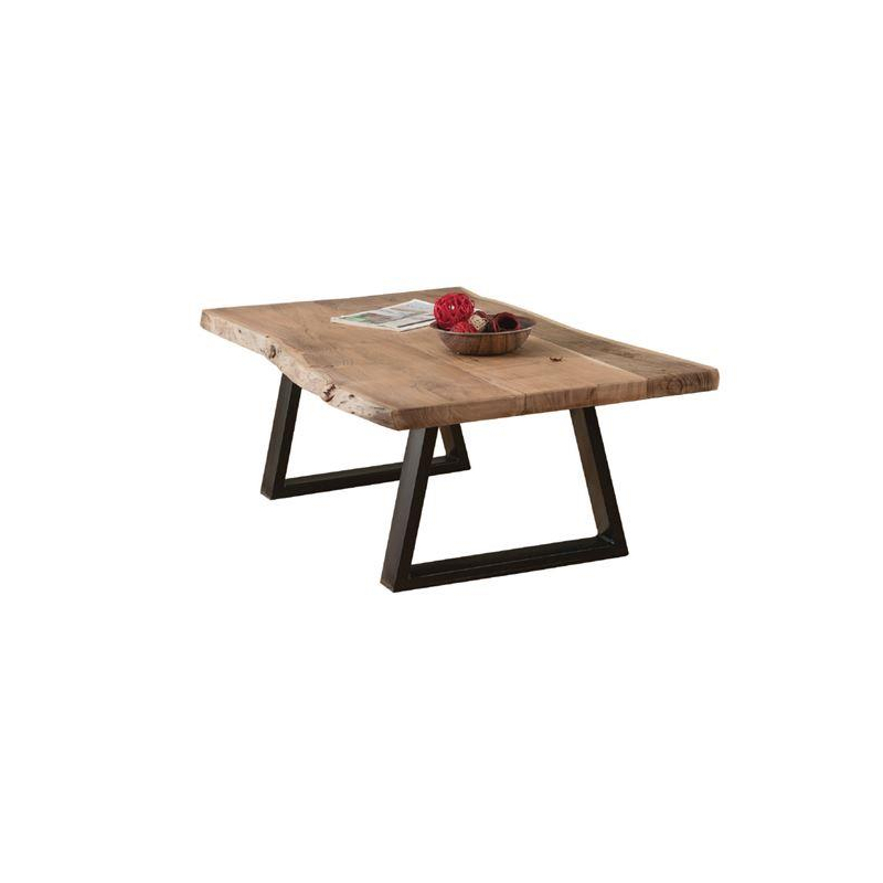 LIZARD Slim Τραπέζι Σαλονιού Καθιστικού, Μέταλλο Βαφή Μαύρο, Ξύλο Ακακία Φυσικό 115x65x40cm Solid Wood 25mm