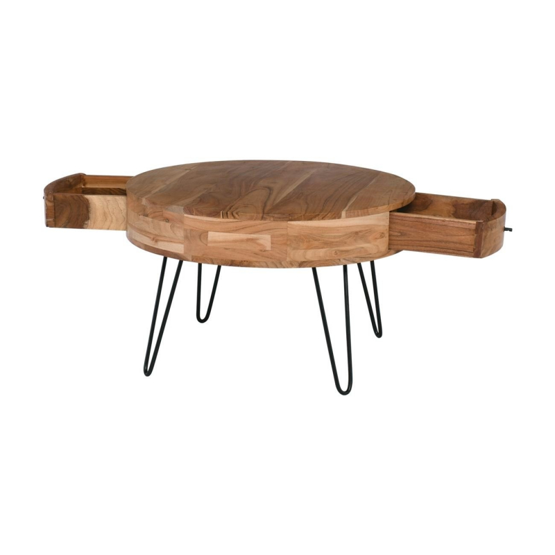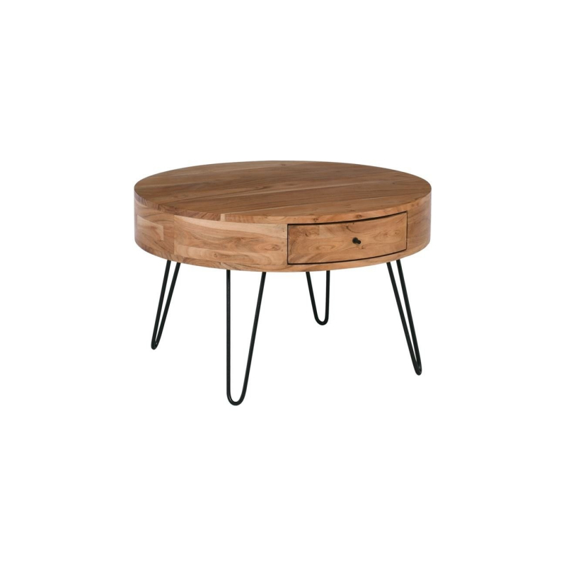 KARIM Τραπεζάκι Σαλονιού Καθιστικού, Μέταλλο Βαφή Μαύρο, Ξύλο Ακακία Φυσικό Φ70xH.42cm