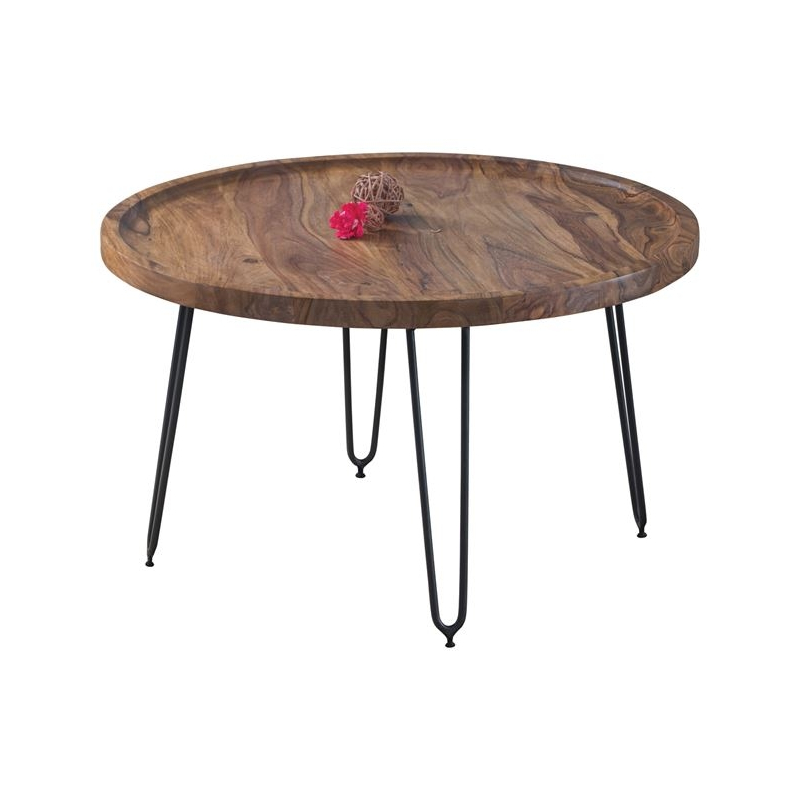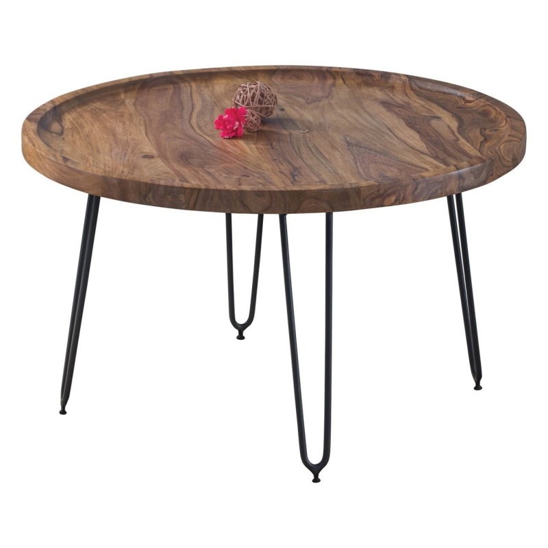 MATRI Τραπεζάκι Σαλονιού Καθιστικού, Μέταλλο Βαφή Μαύρο, Ξύλο Ακακία Φυσικό Φ76xH.45cm