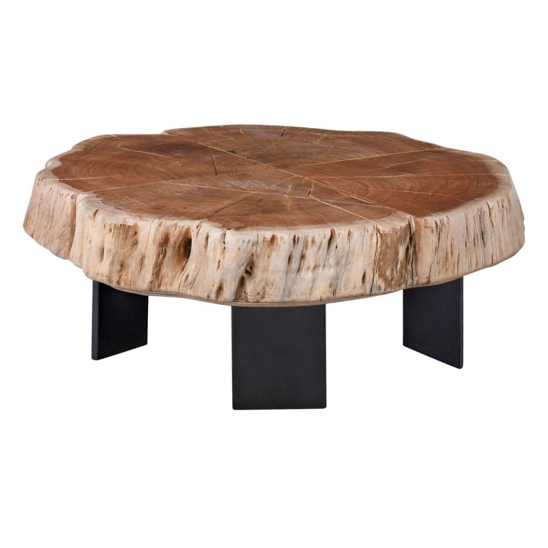 SIVA Τραπεζάκι Σαλονιού Καθιστικού, Μέταλλο Βαφή Ανθρακί, Ακακία Φυσικό +/-70x65x33cm