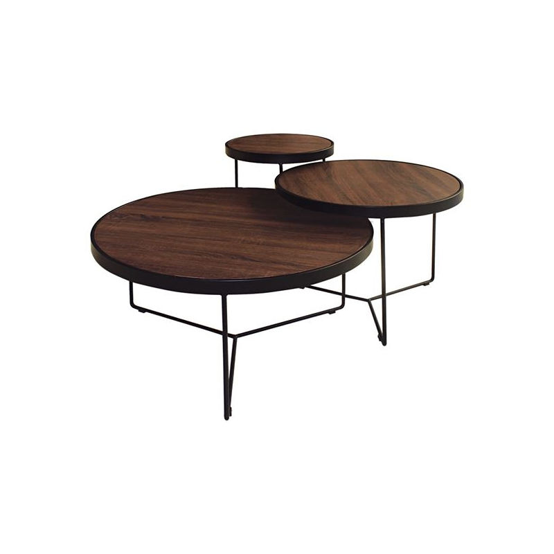 BOB Σετ 3 Τραπεζάκια Σαλονιού Καθιστικού, Μέταλλο Βαφή Μαύρο - Καρυδί Φ42x55cm - Φ62x48cm - Φ82x40cm