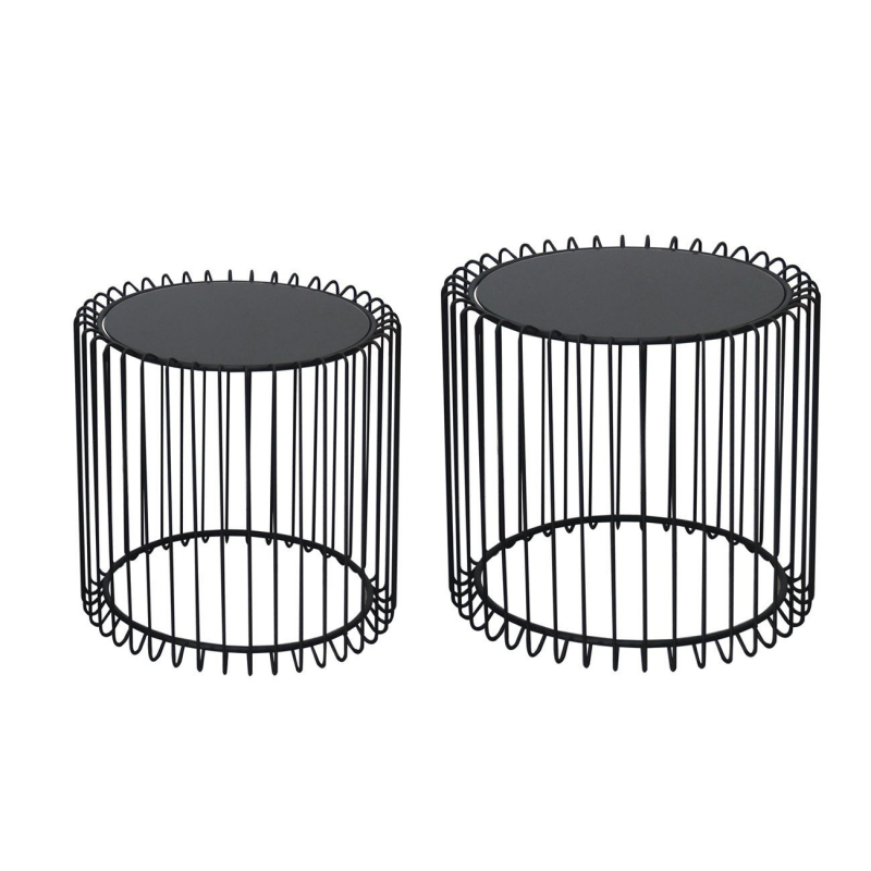 RICO Set-2 Τραπεζάκια Σαλονιού Καθιστικού, Μέταλλο Βαφή Μαύρο, Γυαλί Smoke Φ45 H.40cm + Φ50 H.45cm