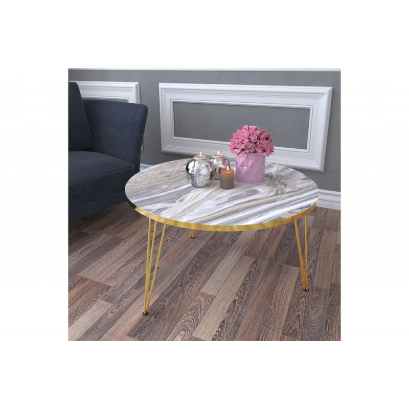 Τραπέζι σαλονιού Nidra pakoworld απομίμηση λευκό μαρμάρου-χρυσό Φ70x40εκ