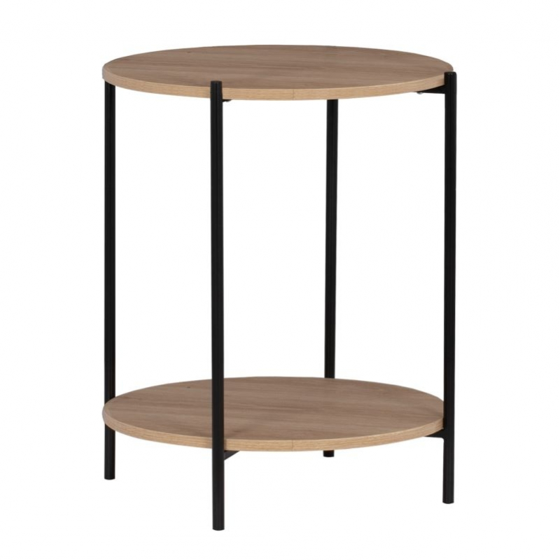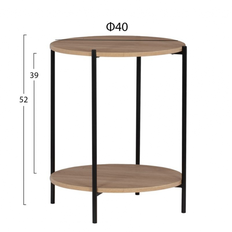 Το NED είναι ένα όμορφο μεσαίου ύψους στρογγυλό βοηθητικό τραπεζάκι μελαμίνης για το σαλόνι, σε ΟΑΚ χρώμα ξύλου. Το χαρακτηριστικό του είναι ότι διαθέτει 2 επιφάνειες οι οποίες στηρίζονται σε ΜΑΥΡΕΣ μεταλλικές χιαστί βάσεις που είναι ενωμένες με τα πόδια. Αυτό το τραπεζάκι θα αναβαθμίσει αισθητικά το σαλόνι σας ενώ μπορεί να ταιριάξει με πολλά διαφορετικά στυλ και χρώματα στον τριγύρω χώρο. ΔΙΑΣΤΑΣΕΙΣ: Φ40x52Y εκ. ΥΛΙΚΑ ΚΑΤΑΣΚΕΥΗΣ: Η διάταξη βάσης με τα πόδια είναι χαλύβδινη Φ16mm, με ηλεκτροστατική βαφή. Info: Η ηλεκτροστατική βαφή είναι μια διαδικασία ξηρής επίστρωσης που χρησιμοποιείται ως μεταλλικό φινίρισμα. Η ηλεκτροστατική βαφή είναι η επίστρωση ξηρής σκόνης μέσω ηλεκτροστατικής διαδικασίας, η οποία στη συνέχεια «κολλάει» στο μέταλλο μέσω της θερμότητας. Οι επιφάνειες είναι κατασκευασμένες από μελαμίνη εξαιρετικής ποιότητας. Η επάνω επιφάνεια είναι 25mm και η κάτω 15mm. ΣΥΝΤΗΡΗΣΗ: Το τραπεζάκι δεν χρειάζεται ιδιαίτερη συντήρηση. Ένα πέρασμα με υγρό πανί είναι αρκετό. Το τραπεζάκι παραδίδεται αμοντάριστο.