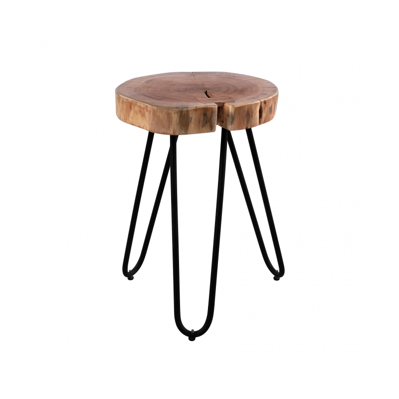 ΗΜ8208.11 Βοηθητικό τραπεζάκι----- Το τρίποδο βοηθητικό τραπεζάκι ΗΜ8208.11 είναι ο ορισμός του ρουστίκ στυλ στο έπιπλο. Το ξύλο είναι στο φυσικό του χρώμα αλλά και στην φυσική του κατάσταση, δηλαδή μια φέτα από τον κορμό του δέντρου. Τα 3 μαύρα μεταλλικά πόδια ολοκληρώνουν αυτή την πολύ απλή και πρακτική υλοποίηση.  Τα ρουστίκ έπιπλα είναι έπιπλα που χρησιμοποιούν ραβδιά, κλαδιά ή κορμούς για φυσική εμφάνιση. Ο όρος «ρουστίκ» προέρχεται από το λατινικό «rusticus» (αγρότης, σε αντίθεση με το αστικό). Το στυλ έχει τις ρίζες του στη ρομαντική παράδοση. Αυτό το στυλ χαρακτηρίζεται από φυσικές υφές, ουδέτερα χρώματα, απλά μοτίβα, μασίφ ξύλο και φωτισμό από φυσικό φως. Όλο αυτό το στυλ προσδίδει μια ζεστή και βαριά γοητεία σε κάθε δωμάτιο. Είναι επίσης αρκετά ευέλικτο και λειτουργεί εξαιρετικά με πολλά άλλα στυλ, όπως παραδοσιακή ή βιομηχανική διακόσμηση. ’λλωστε, η αίσθηση της φύσης, λειτουργεί καταπραϋντικά για τους περισσότερους ανθρώπους.  ΔΙΑΣΤΑΣΕΙΣ: 35x35x46Υ εκ.  ΥΛΙΚΑ ΚΑΤΑΣΚΕΥΗΣ: Τα πόδια είναι κατασκευασμένα από ενισχυμένο μέταλλο και στο κάτω μέρος τους διαθέτουν πλαστικές τάπες για προστασία των δαπέδων. Η επιφάνεια είναι κατασκευασμένη από φυσικό μασίφ ξύλο ΑΚΑΚΙΑΣ και κάθε ένα από αυτά τα έπιπλα είναι μοναδικό λόγω της ανομοιομορφίας των κορμών των δένδρων. Όταν αναφερόμαστε σε μασίφ, εννοούμε τα ξύλα που κατασκευάζονται ολοκληρωτικά από τον κορμό δέντρου. Το μασίφ είναι η πιο ακριβή επιλογή σε είδος ξύλου αλλά ξεχωρίζει για την  διαχρονική αισθητική του. Info: Η ακακία είναι Ιθαγενές είδος της Βορείου Αμερικής και εισήχθη στην Ευρώπη τον 17ο περίπου αιώνα. Είναι φυλλοβόλο δέντρο μέτριου μεγέθους, ύψους 20-25 μέτρων, και ανθίζει την ’νοιξη από Απρίλιο έως Μάιο. Υπάρχουν περίπου 1.300 είδη ακακίας και στην Ελλάδα πολύ λίγα από αυτά ευδοκιμούν. Το χαρακτηριστικό της είναι ότι φύεται σε χαλαρά, βαθιά και νωπά εδάφη, αλλά η προσαρμοστικότητά της είναι εξαιρετική και μπορεί να «πιάσει» ακόμα και σε πολύ φτωχά και ξηρά εδάφη. Είναι ένα όμορφο δέντρο και χάρη στην