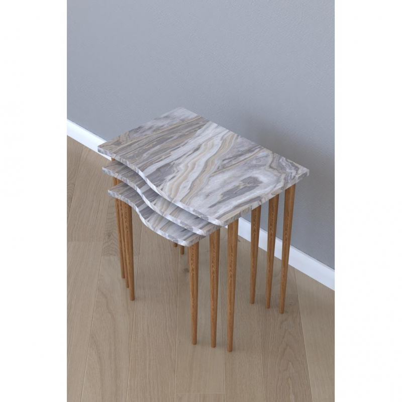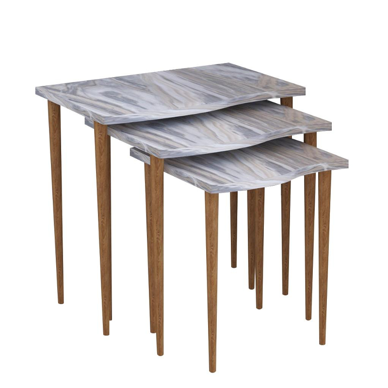 Τραπεζάκι Βοηθητικό ArteLibre NURU Γκρι/Όψη Μαρμάρου Μοριοσανίδα/Ξύλο 53x35x52/44x35x47/35x35x42cm Σετ 3Τμχ