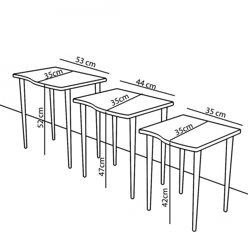 Τραπεζάκι βοηθητικό σε σετ των 3 σε λιτό αλλά ταυτόχρονα μοντέρνο σχεδιασμό θα δώσει μια νέα πνοή και θα αναβαθμίσει τη διακόσμηση του χώρου σας. Παράλληλα, έπιπλο με μεγάλη λειτουργικότητα, θα γίνει απαραίτητο για το σαλόνι ή ακόμα και για άλλους χώρους του σπιτιού σας.
